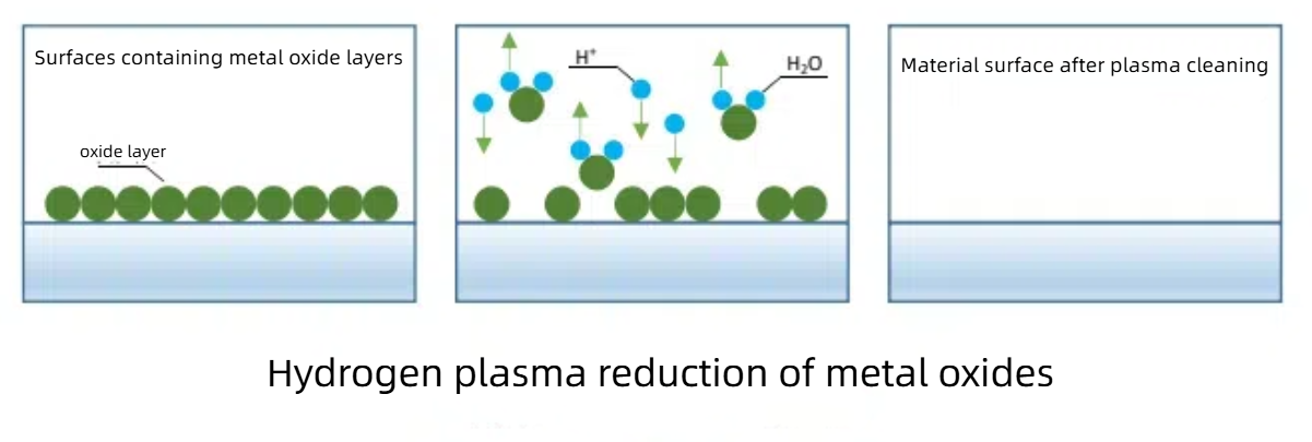 Hydrogen is a reducing gas that can reduce metal oxides or metal salts into metal elements at a certain temperature. In a hydrogen plasma environment, some reduction reactions that require high-temperature heating can be achieved at low temperatures.
